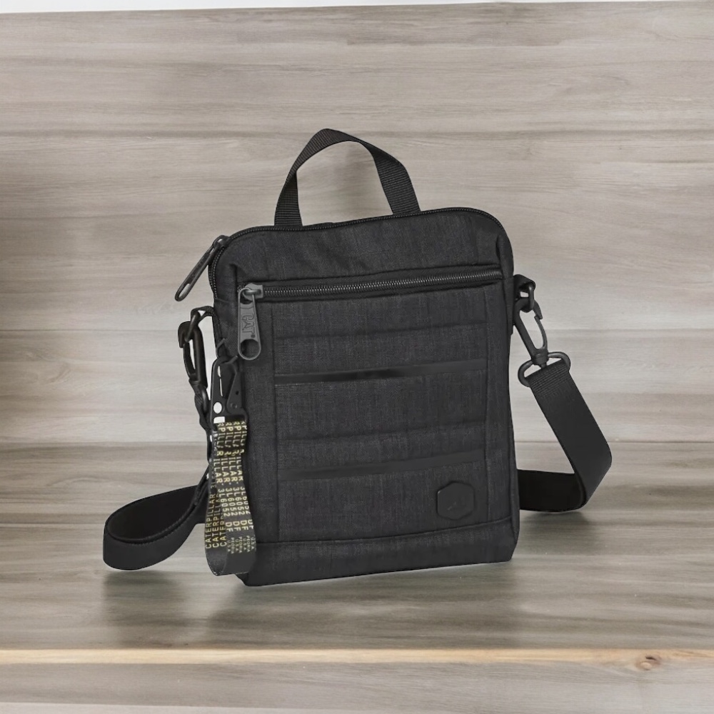 Μαύρο ματ φερμουάρ και μεταλλικό λογότυπο.
