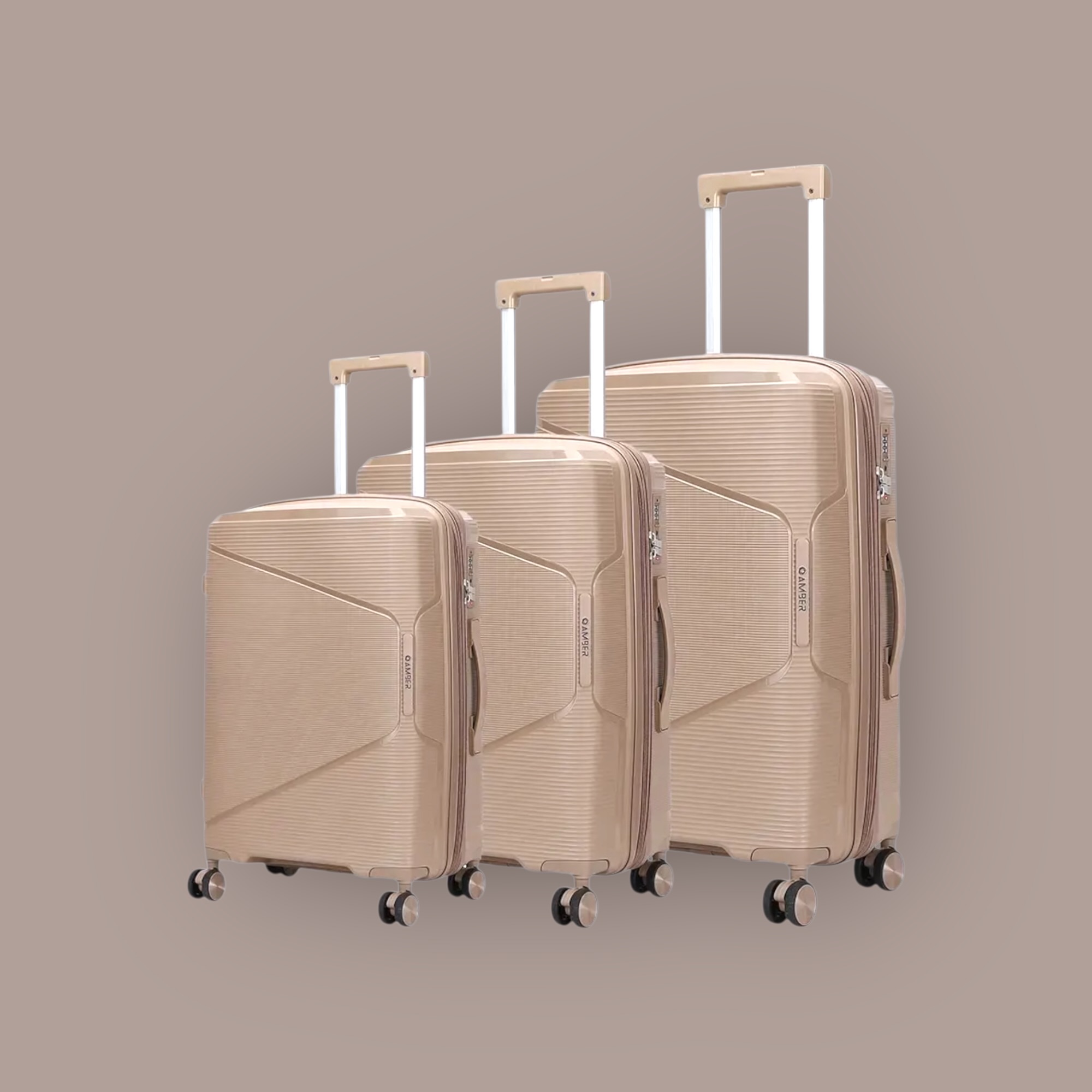σετ 3 βαλίτσες προέκταση – AMBER AM1018 Μόκα (3τμχ)