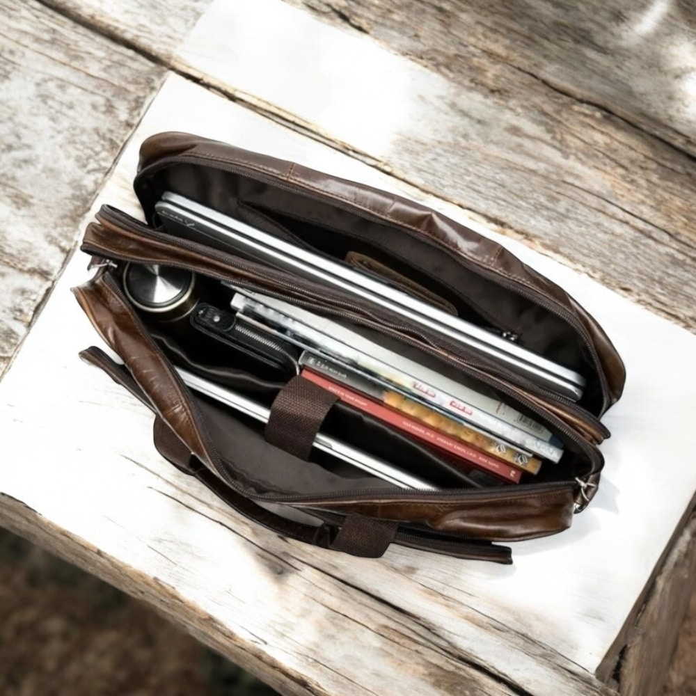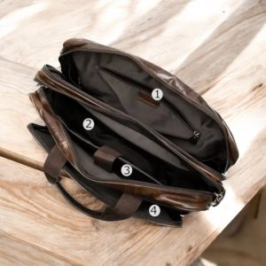 Οργανώνει αποτελεσματικά τα αντικείμενά σου με θήκη για laptop έως 15,6”, εσωτερικές θήκες για κινητό και πορτοφόλι, καθώς και τέσσερις εξωτερικές τσέπες με φερμουάρ. Ο ρυθμιζόμενος ιμάντας προσφέρει άνεση, ενώ το σκούρο καφέ χρώμα ταιριάζει εύκολα με κάθε εμφάνιση.