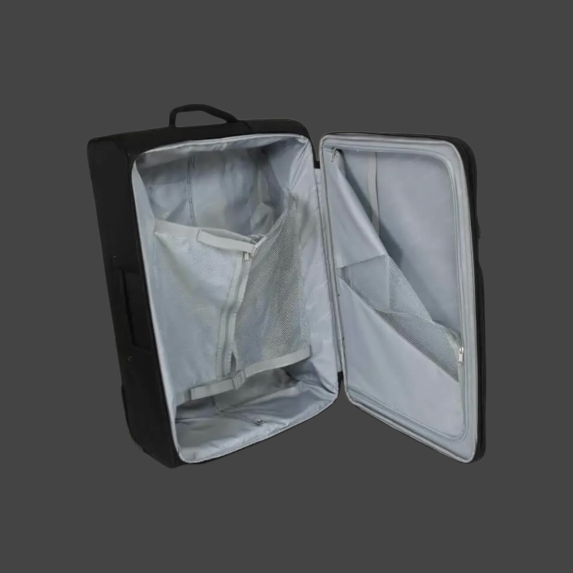 Η Diplomat μεγάλη υφασμάτινη βαλίτσα 71cm σε μαύρο χρώμα σου δίνει τον χώρο και την πρακτικότητα που χρειάζεσαι για άνετα και οργανωμένα ταξίδια. Είναι ιδανική για πολυήμερες αποδράσεις, καθώς συνδυάζει μεγάλη χωρητικότητα, ανθεκτική κατασκευή και εύχρηστο σχεδιασμό.