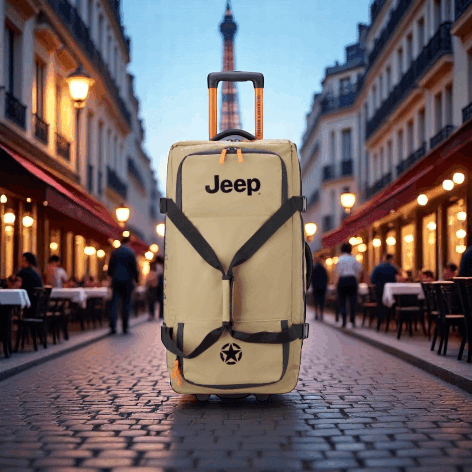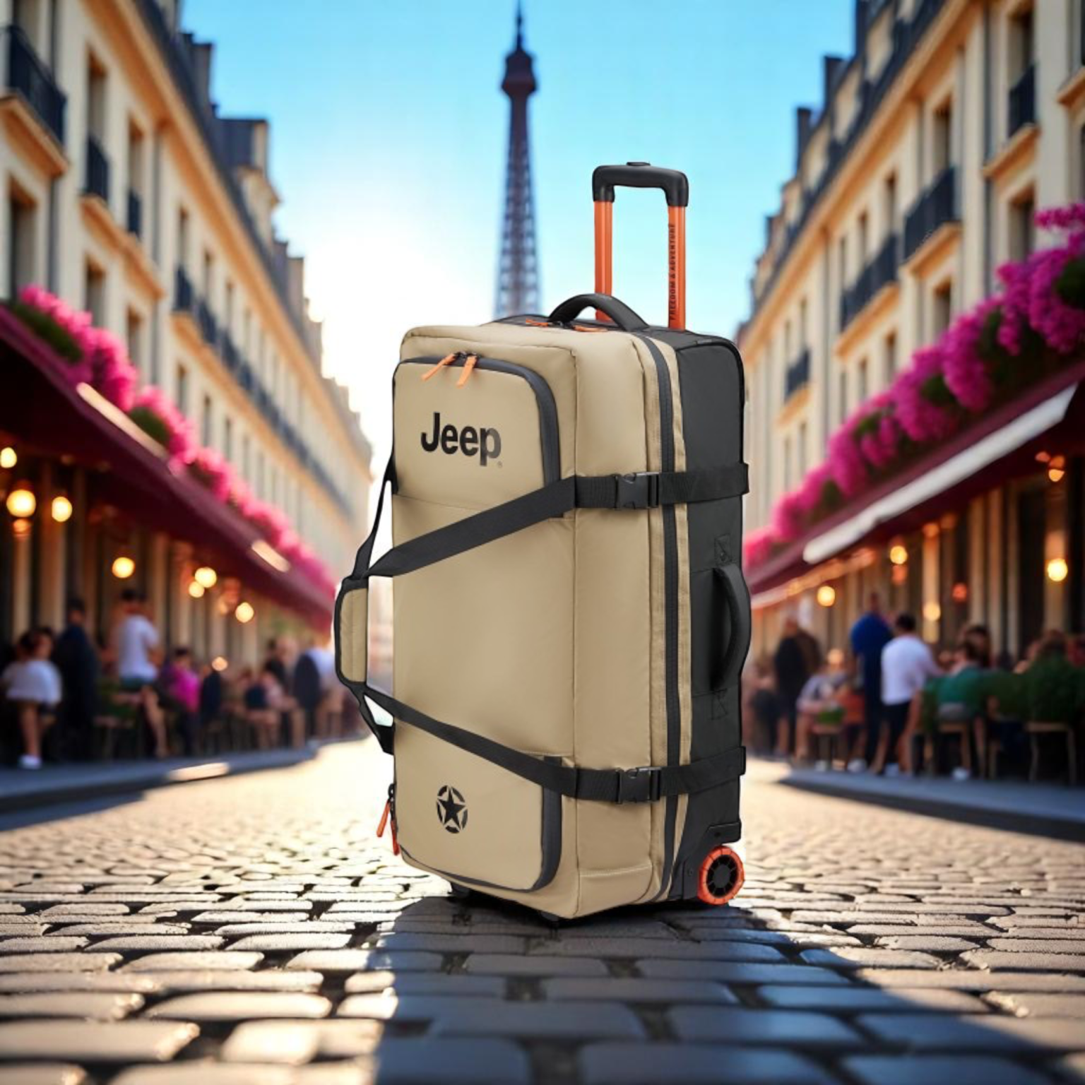 Το Jeep μεσαίο σακ βουαγιάζ trolley ενσαρκώνει την ελευθερία και την περιπέτεια που χαρακτηρίζουν τη φιλοσοφία της Jeep, με την ποιότητα και την τεχνογνωσία της Delsey. Σχεδιασμένο για ταξίδια χωρίς περιορισμούς, προσφέρει ιδανική ισορροπία ανάμεσα σε χωρητικότητα, αντοχή και πρακτικότητα.