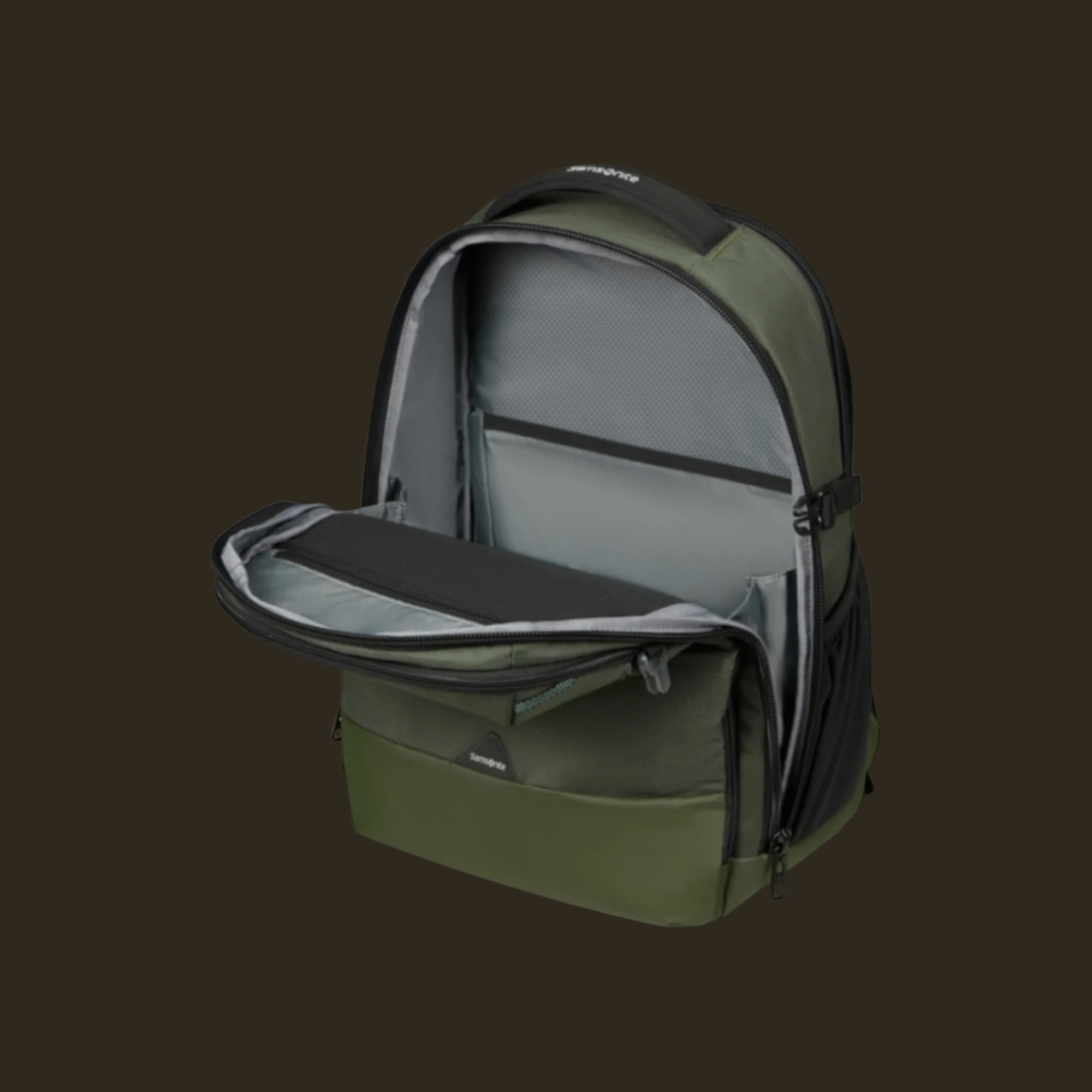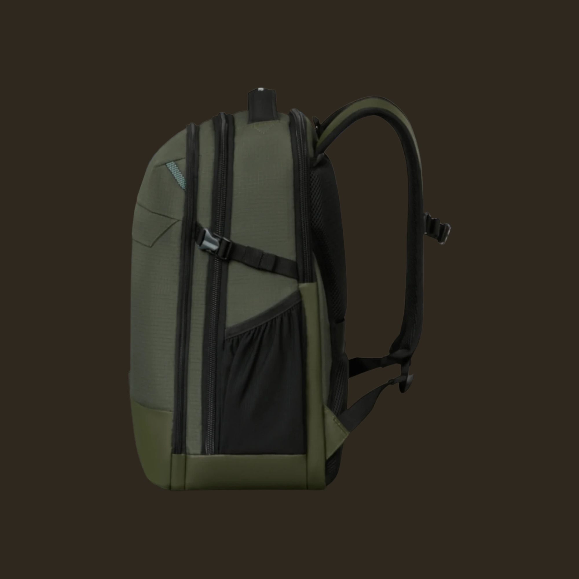 Το samsonite σακίδιο πλάτης Roadseeker σε χακί χρώμα σου δίνει άνεση, πρακτική οργάνωση και σύγχρονο οικολογικό σχεδιασμό για κάθε μέρα και κάθε ταξίδι. Με κατασκευή από ανακυκλωμένο πολυεστέρα rPET ripstop και υδατοαπωθητική επίστρωση, προστατεύεις καλύτερα το περιεχόμενό σου και απολαμβάνεις ανθεκτικότητα στις καθημερινές μετακινήσεις. Φιλοξενείς laptop έως 15,6”, οργανώνεις tablet, έγγραφα και αξεσουάρ σε ξεχωριστές θήκες και έχεις άμεση πρόσβαση στα απαραίτητα από την μπροστινή και τις πλαϊνές τσέπες. Το Smart Sleeve στερεώνει εύκολα το σακίδιο πάνω σε βαλίτσα trolley, ενώ οι ανατομικοί ιμάντες, η ενισχυμένη πλάτη και ο ιμάντας στήθους προσφέρουν πιο ξεκούραστη μεταφορά όλη μέρα.